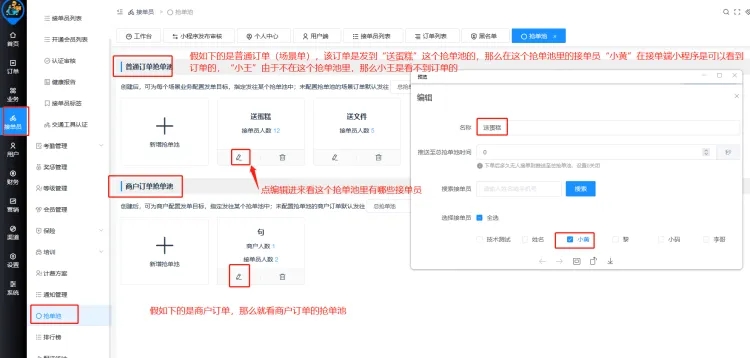 如果开了代理的,添加了多个名称一样的场景,并且场景绑定了城市地区,如果有接单员出现上面所说的问题:接单端看不到订单。解决方法:后台找到这个接单员,编辑,将这个接单员归属给对应的代理。然后保存,保存之后,让这个接单员到接单端小程序个人中心-更多认证那里认证一下对应的场景即可。